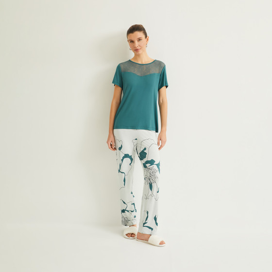 - фасон и посадка — домашняя одежда не должна сковывать движения, выбирайте свободный крой, особенно если вы часто ворочаетесь во сне. Для домашнего отдыха подойдут комплекты с шортами или лосинами, а для сна — классические модели с рубашкой и брюками;