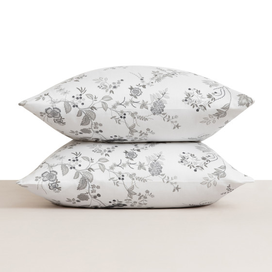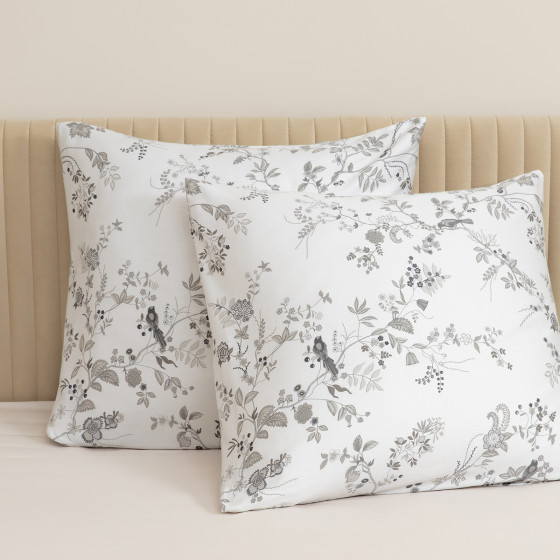 6 дизайнов сочетаются с базовыми цветами отдельных предметов постельного белья: миндальным, светло-серым, темно-серым, светло-лиловым, пудрово-розовым. Каждый из этих дизайнов может стать и тонким акцентом в дуэте с однотонными предметами из сатина, и частью сбалансированной композиции с таким же принтом, но в другой расцветке.